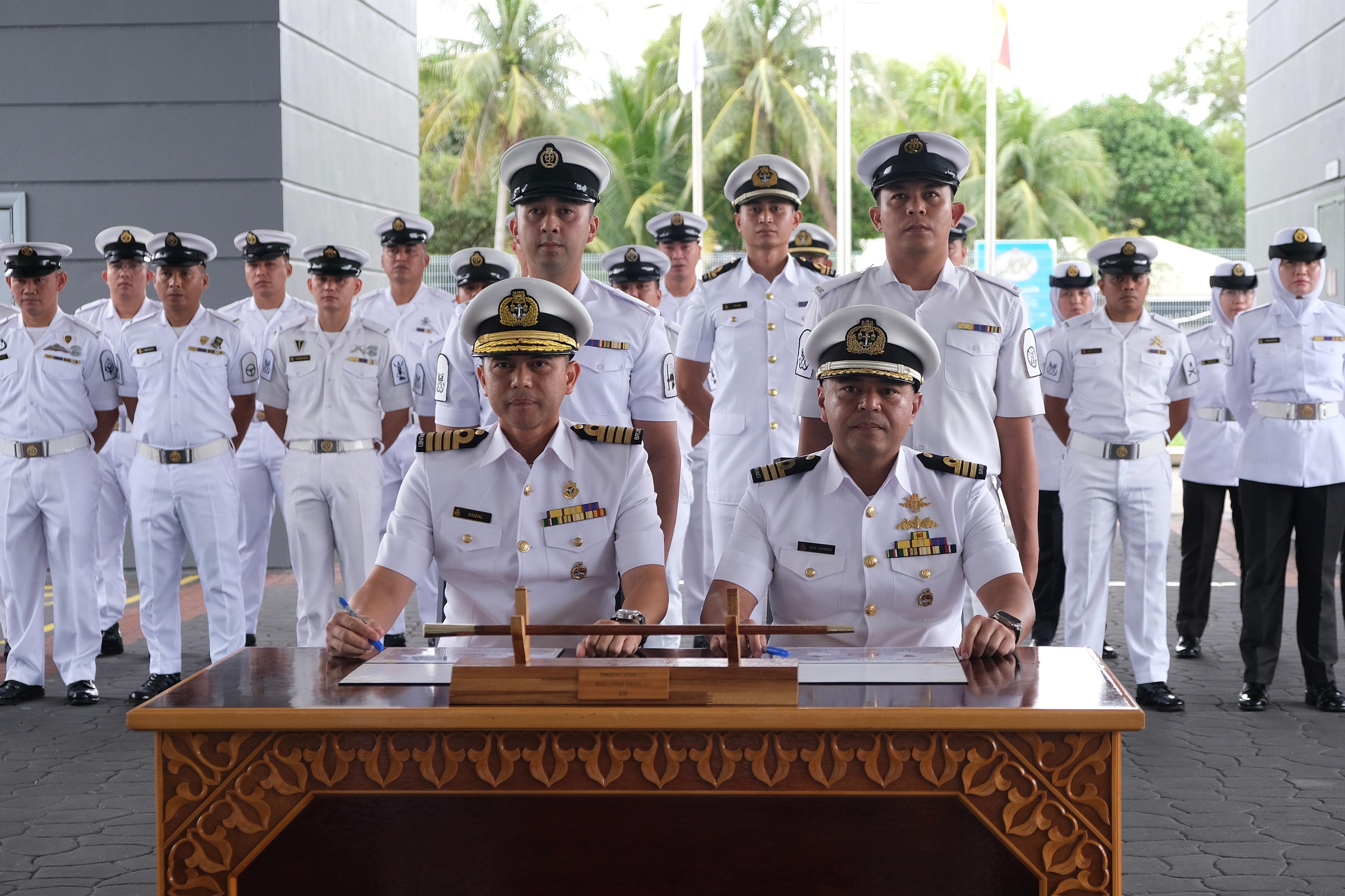 MUARA, JUMAAT, 30 JANUARI 2026 – Pusat Latihan Tentera Laut (PLTL) hari ini telah mengadakan Majlis Serah Terima Tugas antara Komandan Latihan Laut yang menyerahkan jawatan, Kapten Mohammad Faizal Ezam bin Haji Abas, TLDB, dan Komandan Latihan Laut yang menerima jawatan, Komander Hj Edy Jofren bin PDP Dato Paduka Hj Abd Jalil, TLDB, bertempat di Pintu Masuk Utama PLTL.