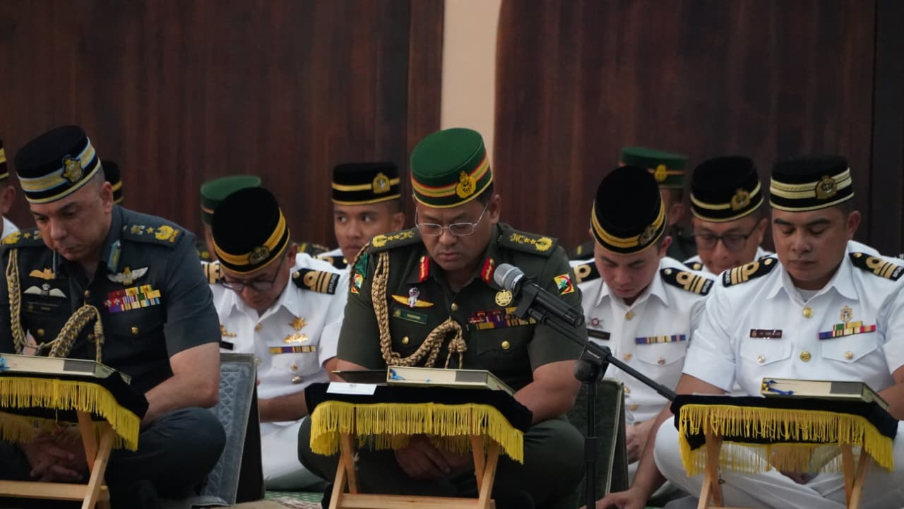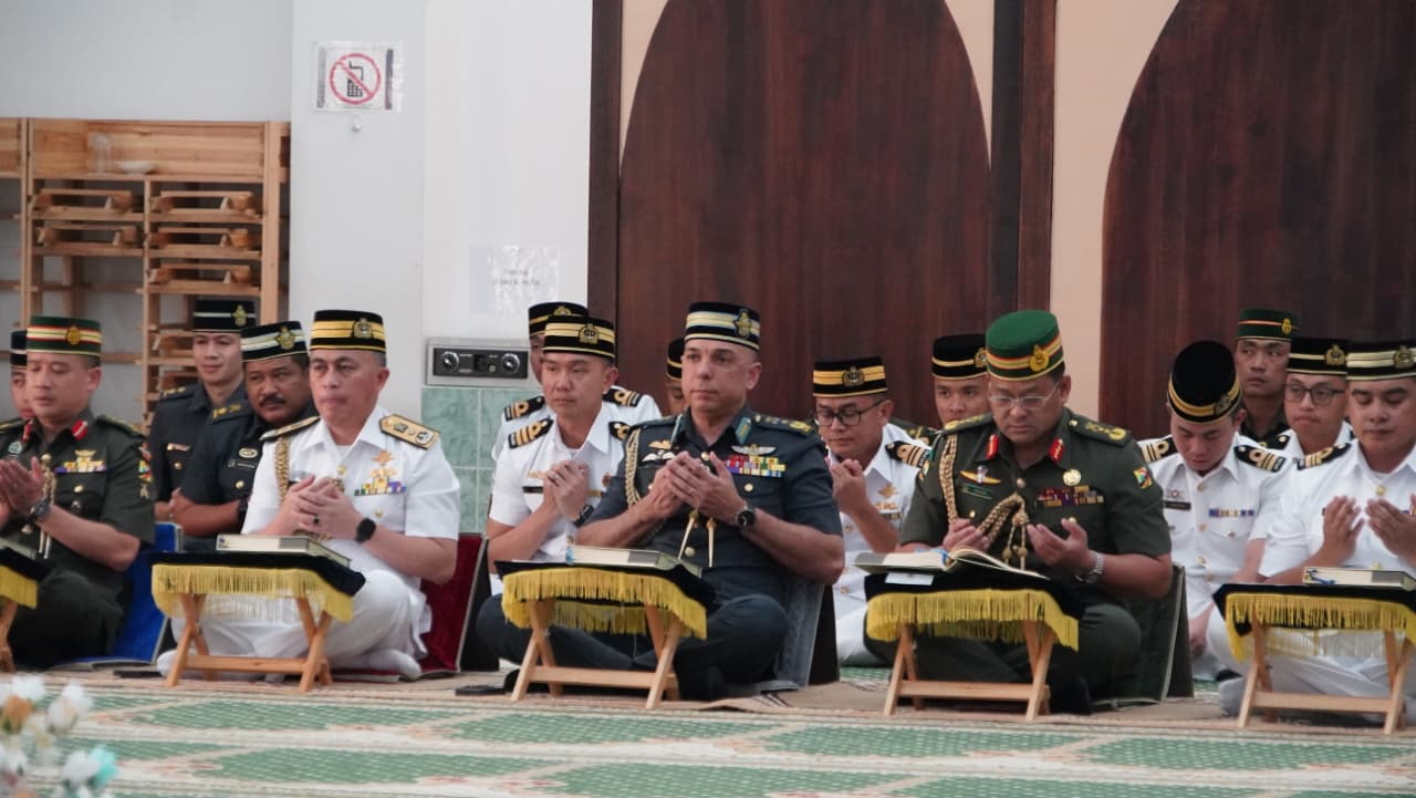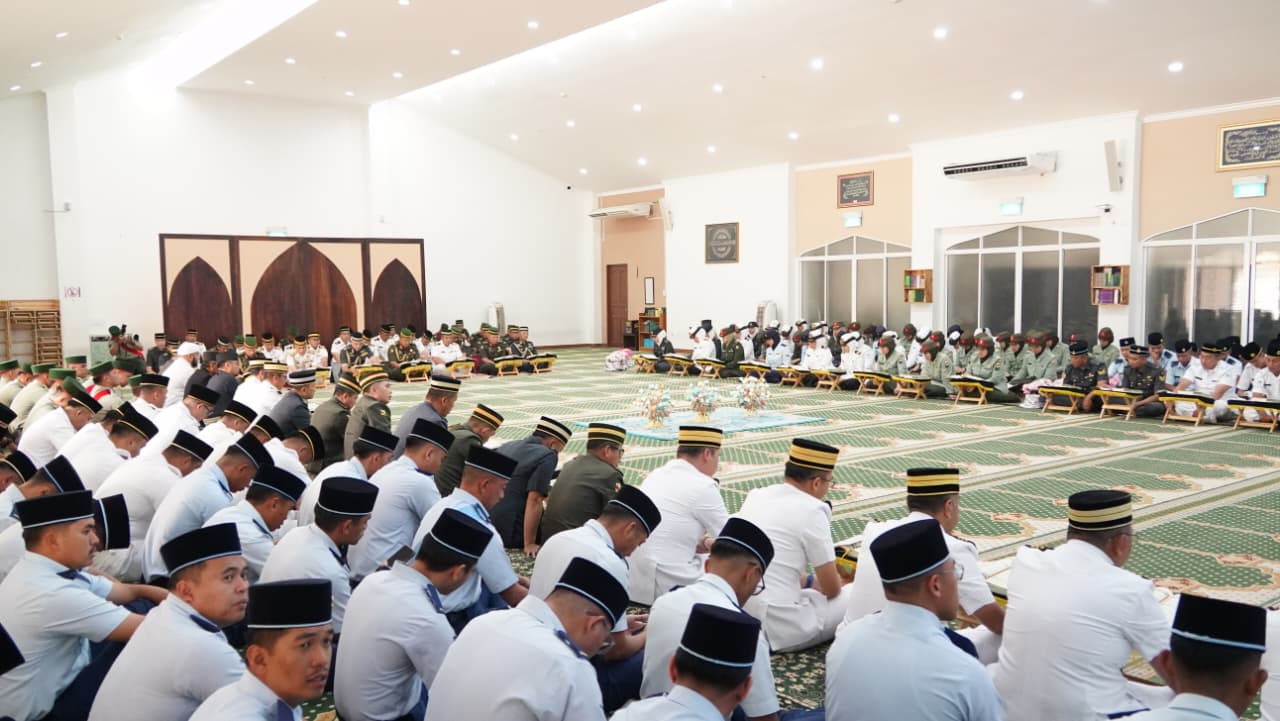 MUARA, JUMAAT, 13 FEBRUARI 2026 – Majlis Khatam Al-Qur’an Sempena Sambutan Hari Ulang Tahun Angkatan Bersenjata Diraja Brunei (HUT ABDB) ke-64 Tahun telah diadakan di Surau Al-Huda, Pangkalan Tentera Laut Diraja Brunei (TLDB). Majlis anjuran Kementerian Pertahanan ini dilaksanakan secara serentak di semua surau perkemahan ABDB termasuk Masjid Pulau Baru-Baru, melambangkan kesepaduan dan penghayatan rohani dalam kalangan warga ABDB.