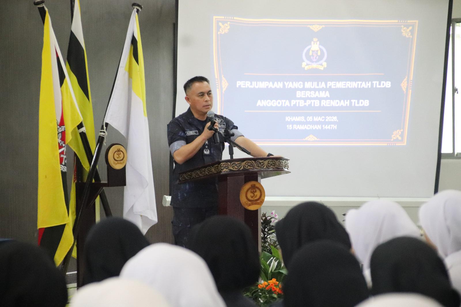 MUARA, KHAMIS, 5 MAC 2026 – Pemerintah Tentera Laut Diraja Brunei (TLDB), Yang Mulia Laksamana Pertama Sahibul Bahari bin Haji Zainal Abidin, telah mengadakan sesi perjumpaan bersama PTB-PTB Rendah di Dewan Semudera, Pangkalan Tentera Laut Muara. Turut hadir ialah Sarjan Mejar Tentera Laut, Sarjan Mejar Kawad serta ahli-ahli Mariners’ Club.