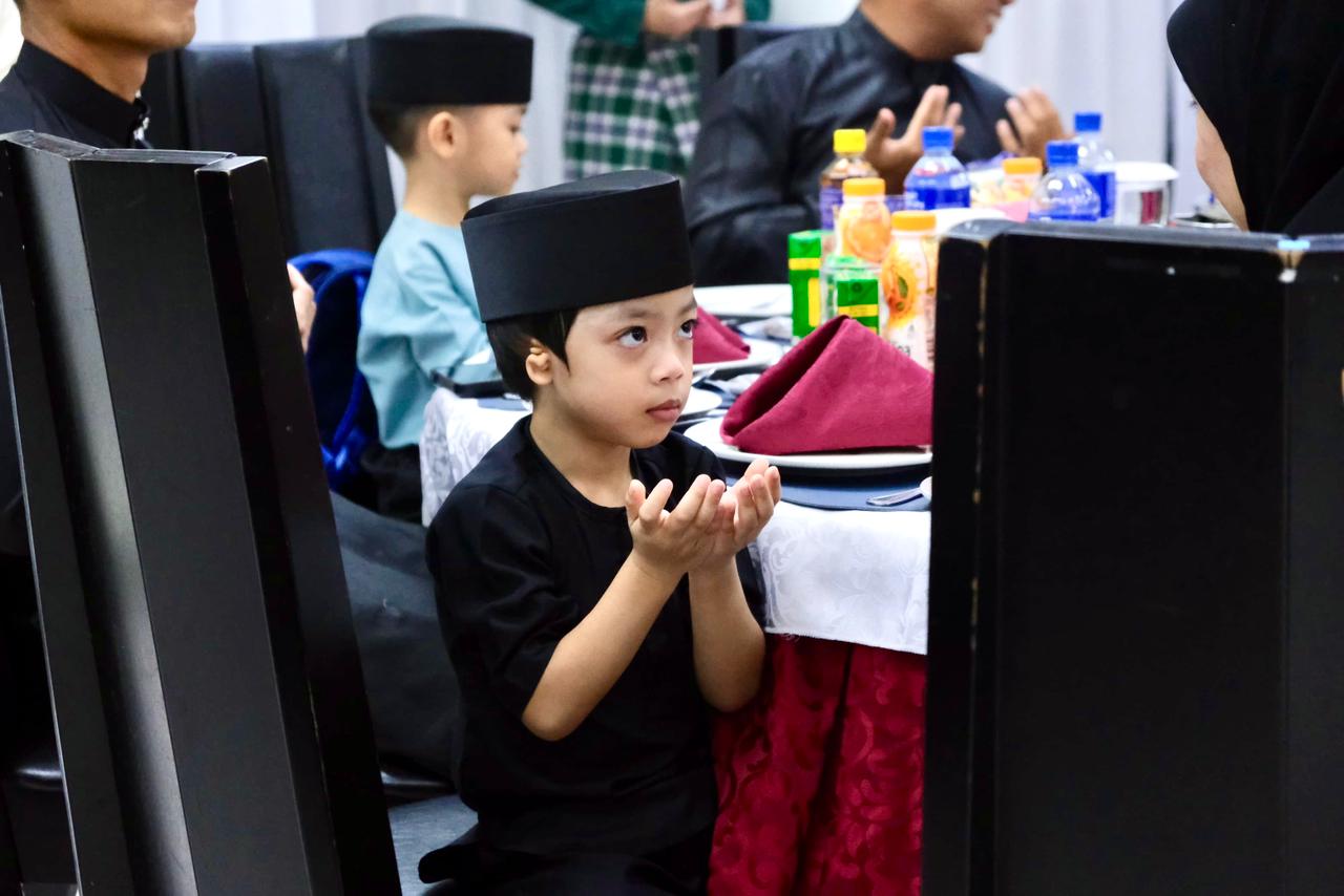 The ceremony began with recitations of Sayidul Istighfar and Surah Al-Fatihah, followed by Selawat Syifa and Doa Selamat, before proceeding with the presentation of donations to the children, accompanied by zikir and prayers prior to the iftar session. The programme then continued with the breaking of fast, Maghrib prayer in congregation and refreshments.