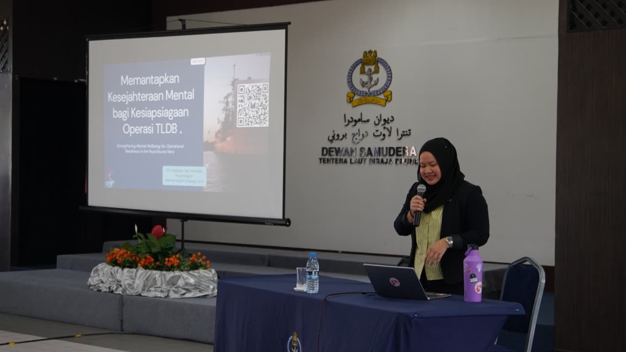 PANGKALAN TENTERA LAUT MUARA, RABU, 15 APRIL 2026 – Tentera Laut Diraja Brunei (TLDB) telah mengadakan Taklimat Kesedaran Kesihatan Mental serta Kesejahteraan di Tempat Kerja yang disampaikan oleh Pusat Promosi Kesihatan, Kementerian Kesihatan, bertempat di Dewan Samudera, TLDB.